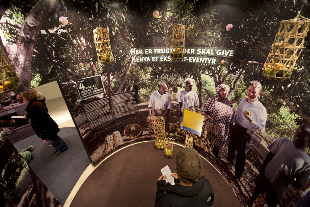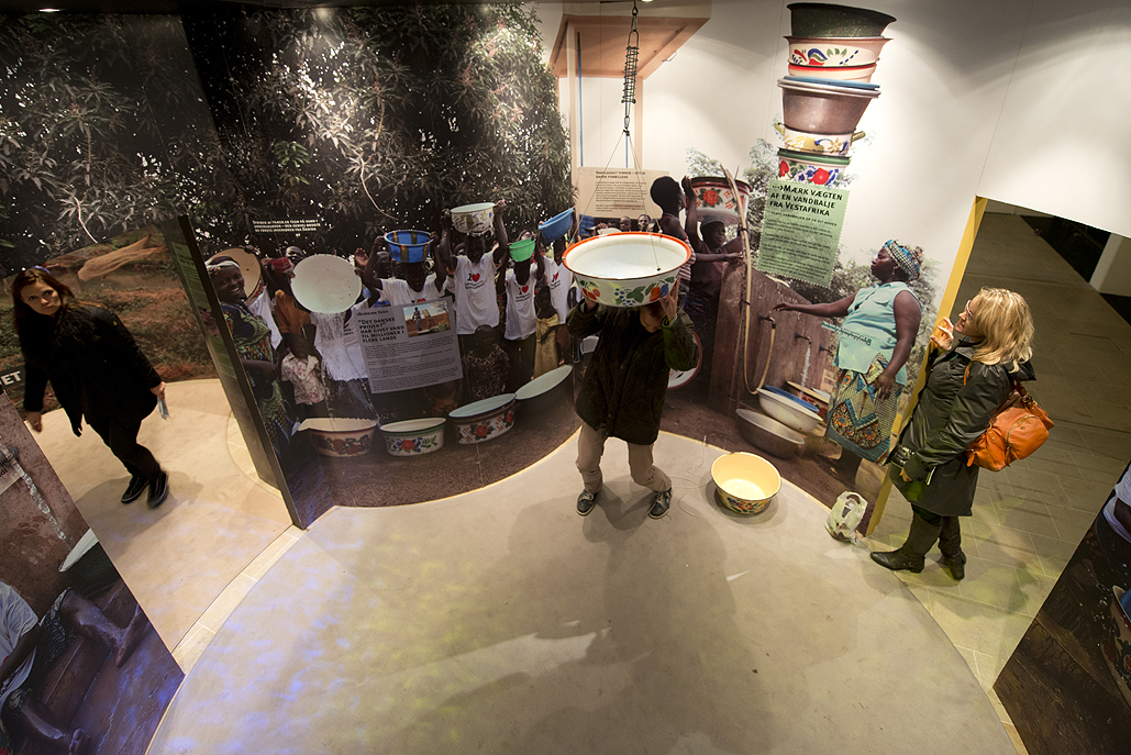 Facts / Institution: Udenrigsministeriet/Danida. Design and concept: graphic designer Maiken Lyster Thonke, Lysth. Manufacturer: Jysk Display.Text, support, PR: Publikum Sound design: Rune Holberg. Scent design: Ambient Idea.