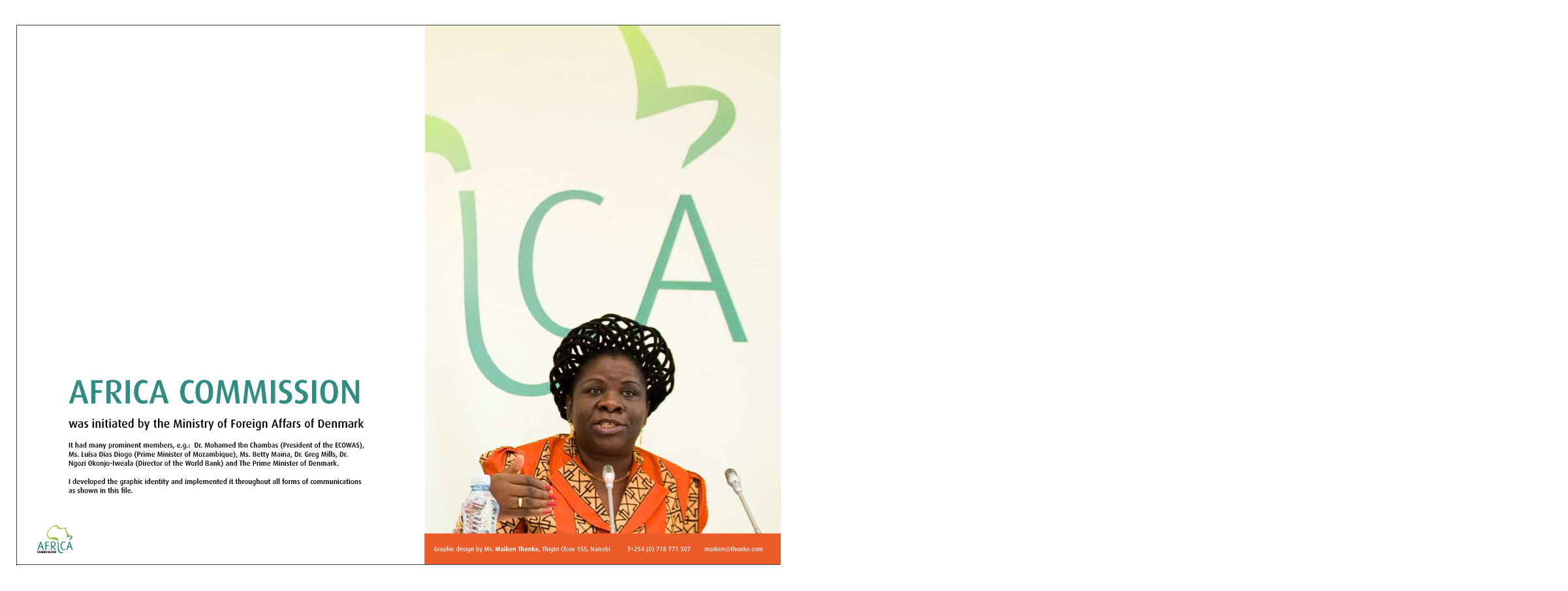 What? AFRICA COMMISSION was initiated by the Ministry of Foreign Affars of Denmark in 2008. It had many prominent members, e.g.: Dr. Mohamed Ibn Chambas (President of the ECOWAS),Ms. Luísa Dias Diogo (Prime Minister of Mozambique), Ms. Betty Maina, Dr. Greg Mills, Dr.Ngozi Okonjo-Iweala (Director of the World Bank) and The Prime Minister of Denmark.