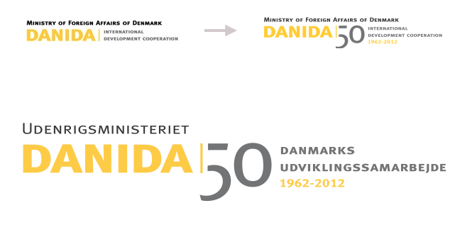 Together with Danida’s Discovery Circles and the “Bedre Rammer” campaign, a new jubilee logo was created to celebrate Danida’s 50 years anniversary. The logo will be used throughout the jubilee year, 2012, on most printed materials from Danida, banners, internet signature, website etc.
