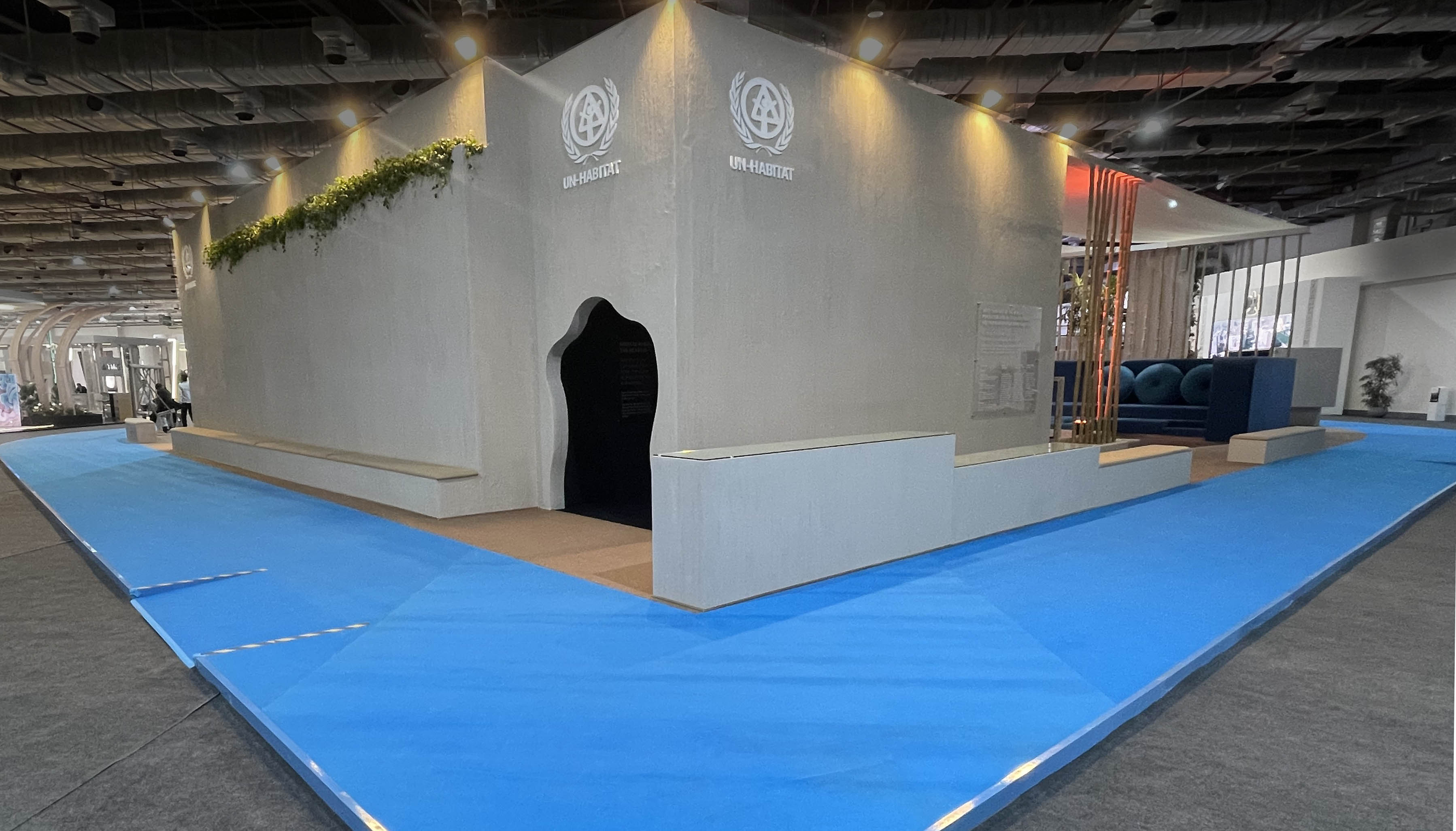 Facts / Organisaion: UN-Habitat. Exhibition design of 900m² corporate exhibition and leading the branding of the 20,000m² venue: Maiken Lyster Thonke, Lysth. Manufacturer: GCM