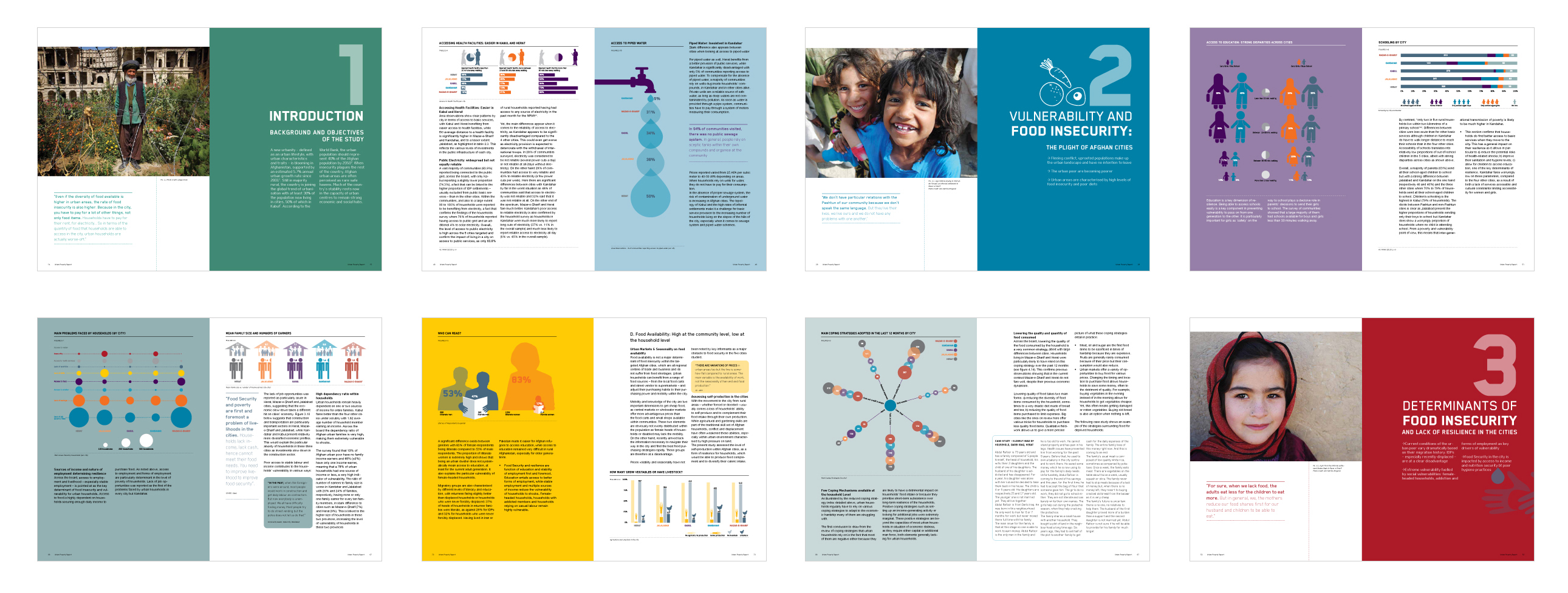 Client: People in Need / Danish Refugee CounsilA very interesting and large study of poverty, food insecurity and resilience in Afghan cities has just been completed. In an attempt to make it reach a broader audience, I was hired to make it more to accessible and welcoming. You’ll see interesting info graphics, eye catching posters and modern and simple report design filled with relevant illustrations.
